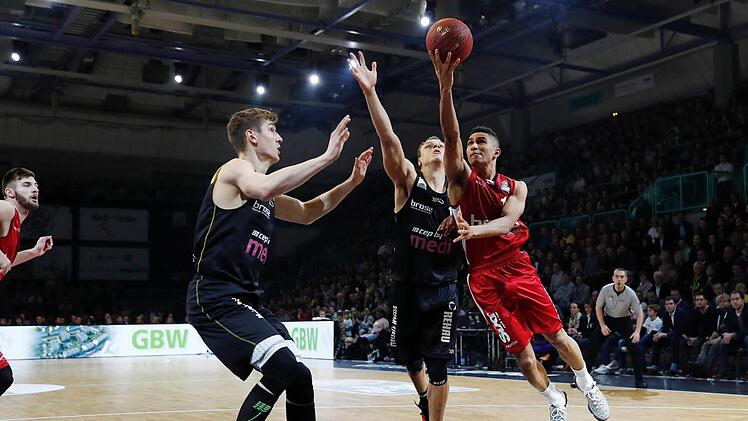 Und es änderte sich nichts am Spielverlauf, denn Leon Kratzer führte sich in seiner Heimatstadt gleich mit einem Block und zwei Punkten prächtig ein. Die frühe Auszeit von Raoul Korner verpuffte wirkungslos. Der starke Darius Miller sorgte nach 18 Minuten für eine 40:15-Führung des Meisters. Die Trefferquoten von 53 Prozent der Bamberger gegenüber 27 Prozent der Hausherren drückten die Kräfteverhältnisse zur Pause eindrucksvoll aus.