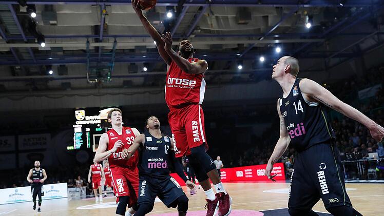 Im dritten Viertel wehrten sich die Hausherren nach Kräften und schlugen aus einigen Unkonzentriertheiten des Brose-Teams Kapital. Vor allem DeMon Brooks war dafür verantwortlich, dass das Medi-Team den dritten Abschnitt mit 18:15 gewann, aber trotzdem noch mit 22 Punkten hinten lag.