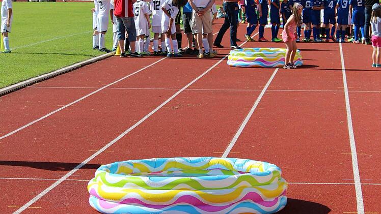 Die kleinen Portugiesen gelangten ohne Gegentreffer ins Finale. Nach zwei Toren von Jannik Breitenbach musste der SV Sambach aber noch einmal zittern. Die Spieler der ausgeschiedenen Mannschaften vergnügten sich bei hochsommerlichen Temperaturen im Fuchs-Park-Stadion beim Torwandschießen oder am Wasserschlauch.