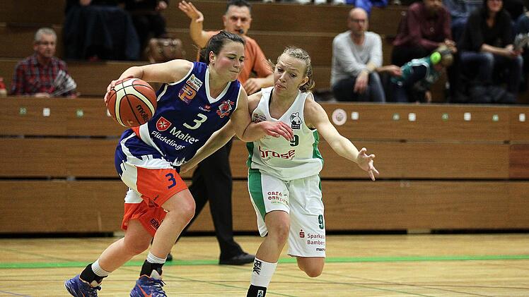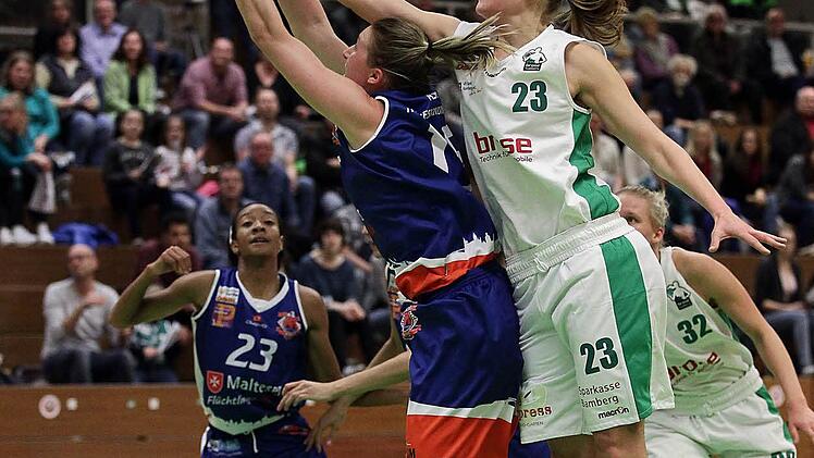 Die war bis zum Seitenwechsel durchaus nach den Vorstellungen der Bambergerinnen verlaufen, denn die Ganzfeldverteidigung bereitete Mainz Probleme. Zu Beginn des dritten Durchgangs wuchs der Vorsprung nach einem Dreier von Svea Wagner und zwei weiteren Zählern durch Tanja Lehnert zunächst auf 34:23 an, ehe die Gäste, angeführt von Jandova und Devries, übernahmen. Mit 21:11 entschied die Truppe von Headcoach Alexander Schoch das Viertel zu ihren Gunsten und lag damit vor dem Schlussabschnitt erstmals in Führung (40:43). Die letzten zehn Minuten entwickelten sich zu einem Kopf-an-Kopf-Rennen, das die DJK-Damen beim Stande von 57:55 für sich hätten entscheiden können. Sie scheiterten jedoch zweimal, mussten den erneuten Ausgleich hinnehmen und nach einem Ballverlust sogar um die Verlängerung fürchten. Richardsons Dreierversuch verfehlte sein Ziel jedoch deutlich und bescherte den Zuschauern eine fünfminütige Zugabe. Die gestaltete sich nicht minder spannend, zum Leidwesen der Bamberger Anhänger ließ aber weder Jansones Drei-Punkte-Spiel noch Sokmans Dreier das Pendel zu Gunsten der Gastgeberinnen ausschlagen. Mainz hatte stets eine Antwort und damit nach einer umkämpften Begegnung am Ende die Nase vorn.