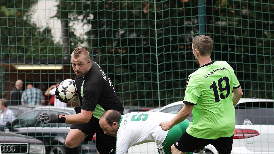 Die "Nullachter" wirkten nach einer kurzen Abtastphase topfit und setzten den einstigen Kreisligisten gleich vehement unter Druck. Nach einem langen Ball eröffnete Offensivmann Frank Fleischmann in der 9. Min. den Torreigen, als er die Kugel wuchtig in den Gästekasten hämmerte. Wenig später markierte der 30-jährige Scharfschütze auch den zweiten Treffer für die "Grün-Weißen". Nach 20 Minuten befreiten sich die Trunstadter etwas aus der Umklammerung, hatten durch Heiko Martin und Julian Gann auch einige Chancen, die aber überhastet vergeben wurden. Auf der Gegenseite setzte 08-Kapitän Christian Mühlfriedel einen Freistoß zum 3:0 über die Mauer in den Trunstadter Kasten. Kurz vor dem Pausenpfiff netzte Gästeakteur Julian Gann einen wuchtigen Distanzschuss ein, und die Anhänger der SpVgg witterten Morgenluft.