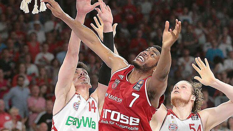 Zwei Matchbälle für die Brose Baskets - die Bamberger Basketballer feierten am Sonntagabend einen umjubelten 91:79 (44:44)-Sieg gegen den Titelverteidiger Bayern München und gingen in der Finalserie nach dem Modus best-of-five mit 2:1 in Front. Somit kann die Mannschaft von Andrea Trinchieri bereits am Mittwoch (20 Uhr) mit einem Sieg im Münchner Audi Dome die siebte deutsche Meisterschaft seit 2005 perfekt machen. Gelingt das nicht, fällt nächsten Sonntag (15 Uhr) in der Frankenhölle die Entscheidung über die Titelvergabe.
