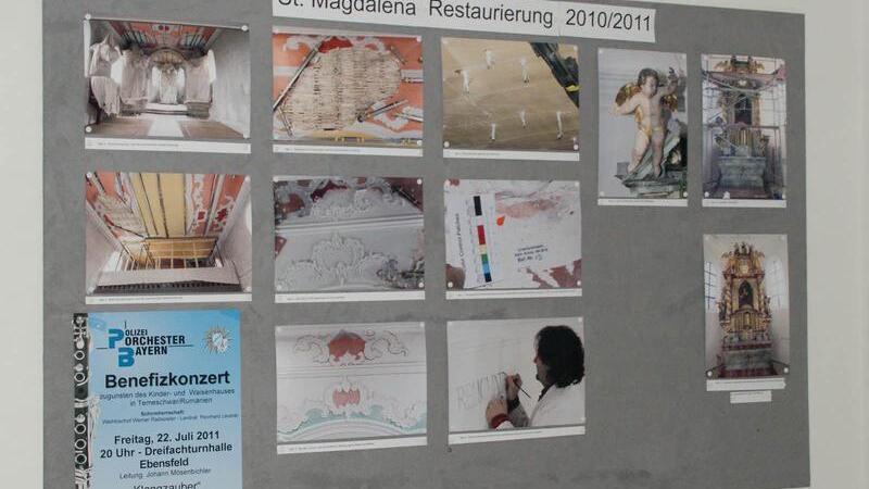 Aufgrund der Deckenprobleme konnten die Kirchenmaler erst vor etwa einem Jahr beginnen. Sie waren neun Monate aktiv. Neu gestaltet wurde dabei nicht nur die Decke, sondern auch Wände, Kanzel und Heiligenfiguren. Verzichtet haben die Maler auf ein neues Deckengemälde. Das ursprüngliche Bild, das angeblich Maria Magdalena vor dem leeren Kreuz zeigte, war Ende des 19. Jahrhunderts übermalt worden - und bei der Restaurierung der Decke waren keine Spuren des Gemäldes mehr zu finden.