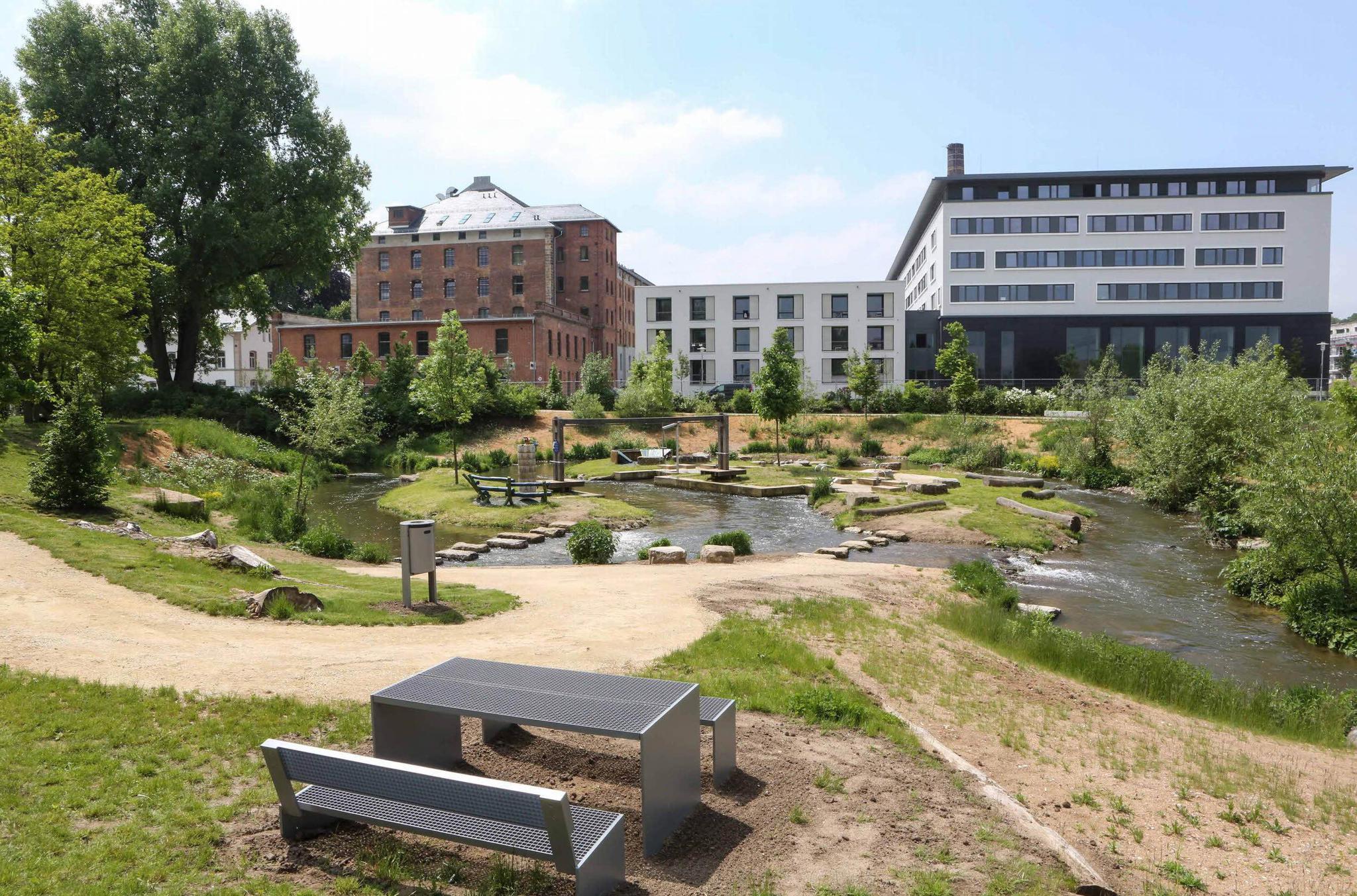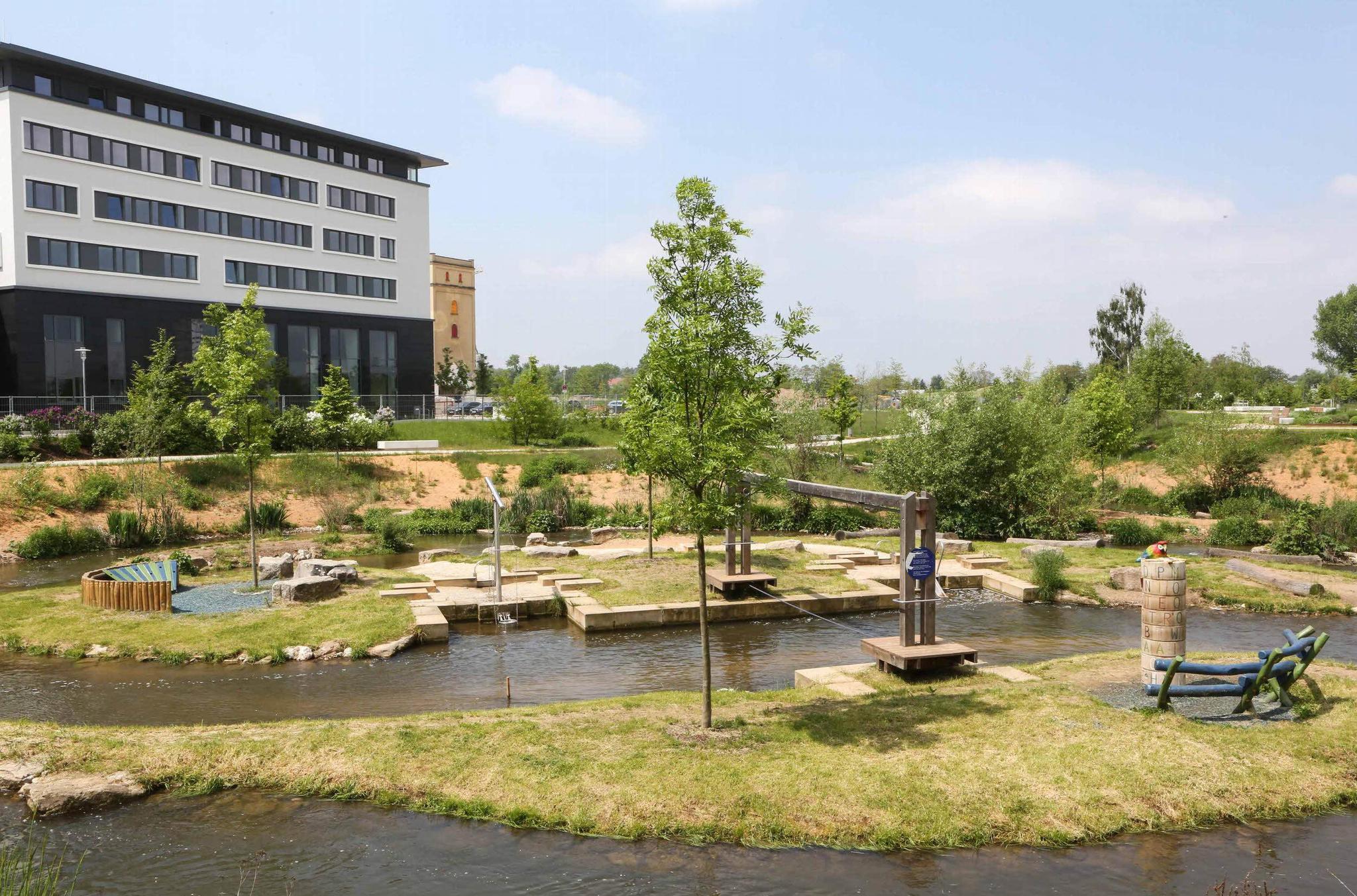 Neue Rasenflächen und Bäume Es wurde auf dem etwas verkleinerten Gelände der ehemaligen Landesgartenschau neue Rasenflächen ebenso angelegt wie zusätzliche Linden- und Zierkirschbäume gepflanzt. Zudem erhielt das umgestaltete Gelände zahlreiche neue Sitzgelegenheiten und vor allem erstmals Abfallbehälter.