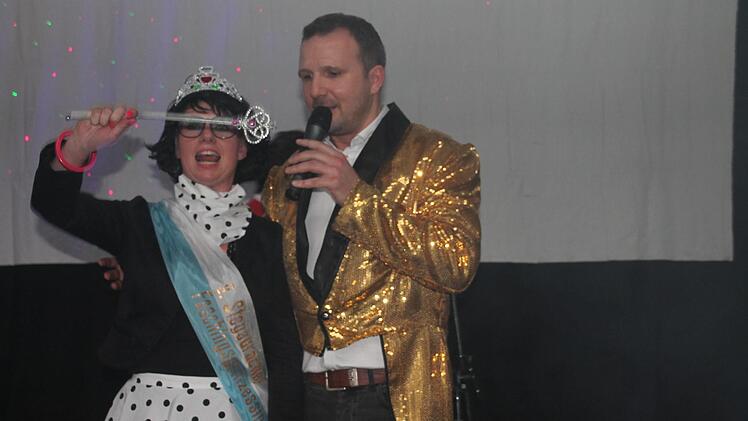 Prinzessin Simone von Stegaurach nahm von Conferencier Jörg Wagner Glückwünsche zum neunten Titel entgegen und grüßte ohne große Worte ihr Narrenvolk aus Stegaurach und die Gäste.