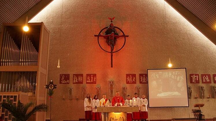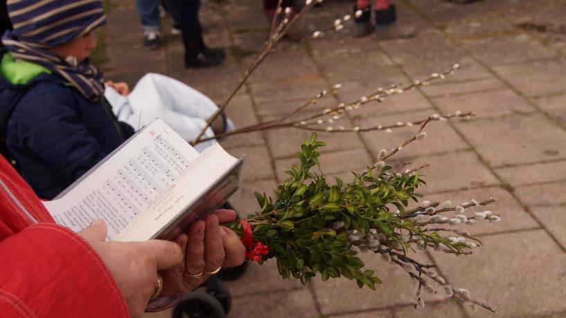 Nach dem Segnen der Palmbuschen zogen alle mit dem Lied: "Singt dem König Freudenpsalmen" in das Gotteshaus ein, wo sie Eucharistie feierten.