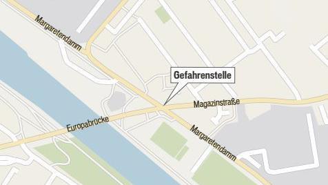 Stefanie Kromm will mit ihrem Mann, ihrem Sohn und ihrer Tochter die Kreuzung Margaretendamm/ Magazinstraße in Richtung Europabrücke überqueren. Während Vater und Sohn die Ampel bereits hinter sich haben, wartet Kromm mit ihrer Tochter. "Sie hat gerade erst Radfahren gelernt und sich geziert", erzählt sie. "In diesem Moment schießt ein Rechtsabbieger mit weit über 50 Stundenkilometern vorbei. Hätte meine Tochter nicht gezögert, wäre sie vielleicht überfahren worden", zeigt sich die junge Mutter bestürzt.