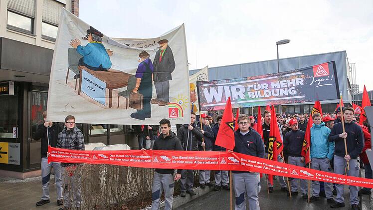 Jugendvertreter: Forderung nach mehr Lohn ist gerechtfertigt Unter dem Slogan "Wir für euch und ihr für uns" sei auch die Jugend bereit, sich am Arbeitskampf zu beteiligen. Dies betonte der Vorsitzende der Bosch-Jugendvertretung, Michael Schulz. "Der Gewinn der Unternehmer boomt und wir möchten auch ein Stück des großen Kuchens abbekommen. Denn wir sind tagtäglich die Mitarbeiter, die an den Maschinen ihr Bestes geben, damit am Ende die Stückzahlen und der Gewinn passen", unterstrich der Jugendvertreter. Die Forderung nach mehr Lohn sei mehr als gerechtfertigt.