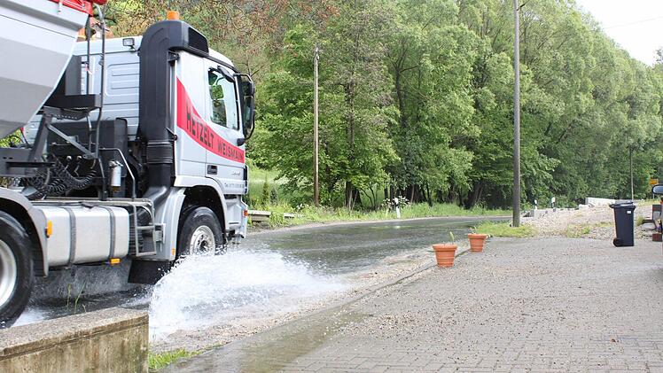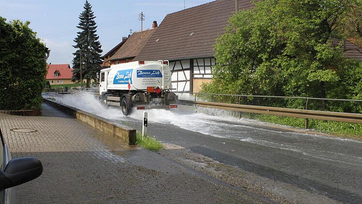 Situation seit Jahren bekannt Um wenigstens ihre Hofeinfahrt ein bisschen zu schützen, hat Eva Schickentanz nun Pflanzkübel dort aufgestellt. Denn die Auffahrt wurde von den Lastwagen auch gerne als Ausweichplatz benutzt. Sie beklagt auch, dass die Situation schon seit Jahren bekannt, aber nichts unternommen worden sei. Schilder wurden nun am Montag aufgestellt: "Fahrbahn überflutet" und Tempo "30". Bürgermeister Franz Zenk (CSU) habe ihr auch einen Ortstermin mit dem zuständigen Straßenbauamt zugesagt. Doch das könne dauern.