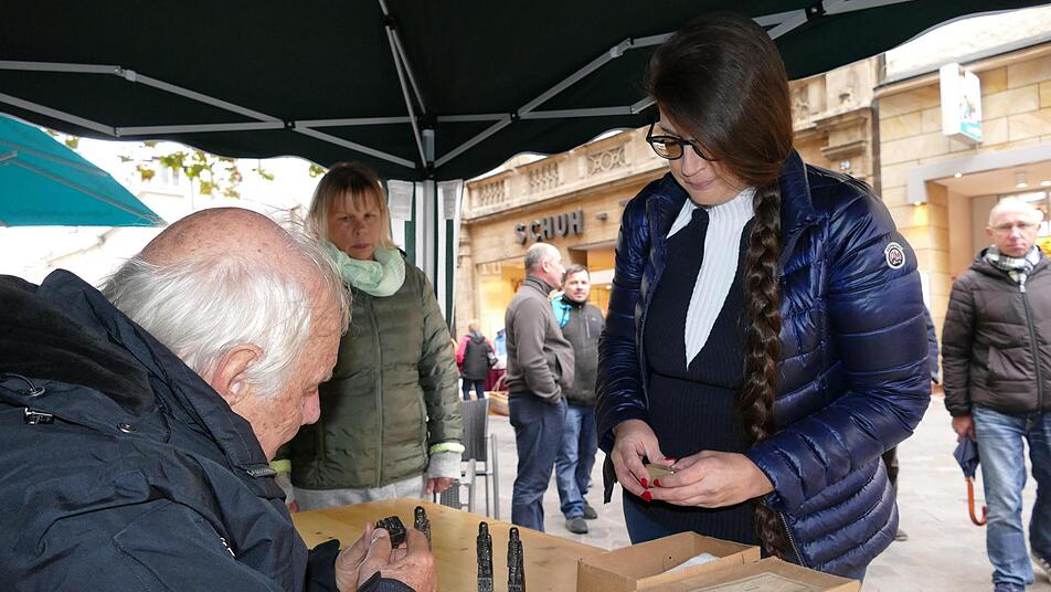 Wer von den Käufern genauer wissen wollte, was sein erworbener Schatz tatsächlich wert ist, marschierte zwischen 14 und 16 Uhr zu den Gutachtern Beil und Loefke. So wie beispielsweise Susanne Stäblein aus Münnerstadt. Die Sammlerin von Asiatica zeigte vier kleine Wächter-Figuren aus Stein, Provenienz China. "Um 1900" datierte Beil die feine, "sehr interessante" Arbeit, riet der Frau aber, einen in diesem Spezialgebiet Fachkundigeren als ihn heranzuziehen. Auch das gehörte zum "ehrlichen" Antik- und Trödelmarkt "mit netten Leuten, an dem der Spaß an erster Stelle steht", wie eine Hobby-Händlerin aus Straubing sagte und einem Familienvater eine alte Kinderbadewanne aus Zinn anpries.