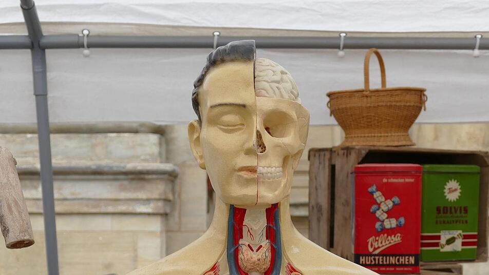 Und wenn dem Anatomiemodell das Herz fehlte, vermisste an ihrem Stand ein Frauenbein gleich den ganzen Körper. Dafür steckte es in einem schwarzen Netzstrumpf: "Die Leute kaufen so was als Deko!", lachte die Straubingerin.