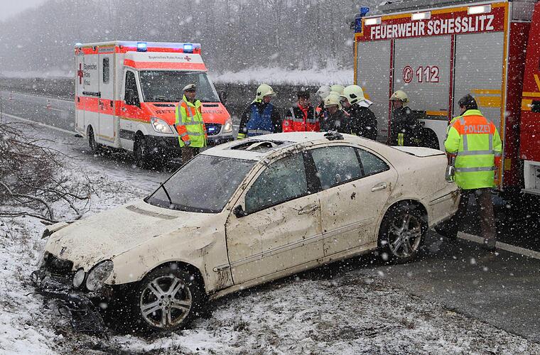 Nicht angepasste Geschwindigkeit auf schnee- und regennasser Fahrbahn war die Ursache für einen Unfall am Dienstagmittag auf der Autobahn 70 zwischen Scheßlitz und dem Kreuz Bamberg. Eine Taxifahrerin aus Nürnberg ist mit ihrem Mercedes nach rechts von der rutschigen Fahrbahn abgekommen, in die Böschung gerutscht und hat sich dort mit ihrem Fahrzeug überschlagen.