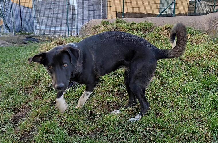 Der Mischling mit seinem dunklen Fell und weißen Pfoten habe Gelenksverformungen an den Hinterbeinen, schreibt das Tierheim Bamberg. Am besten sei er bei erfahrenen Leuten aufgehoben, die ihn konsequent erziehen.