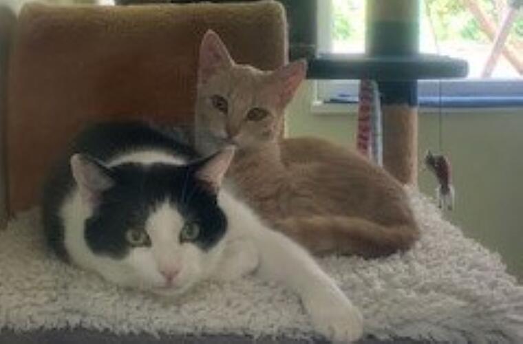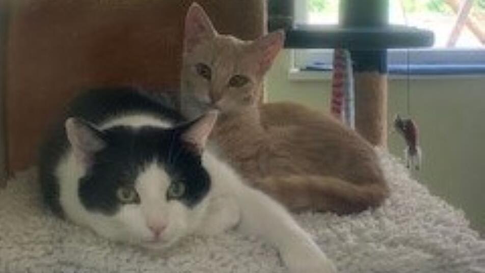 Henri und Sissi, zwei Katzen aus dem Tierheim Bamberg, suchen gemeinsam ein liebevolles Zuhause.