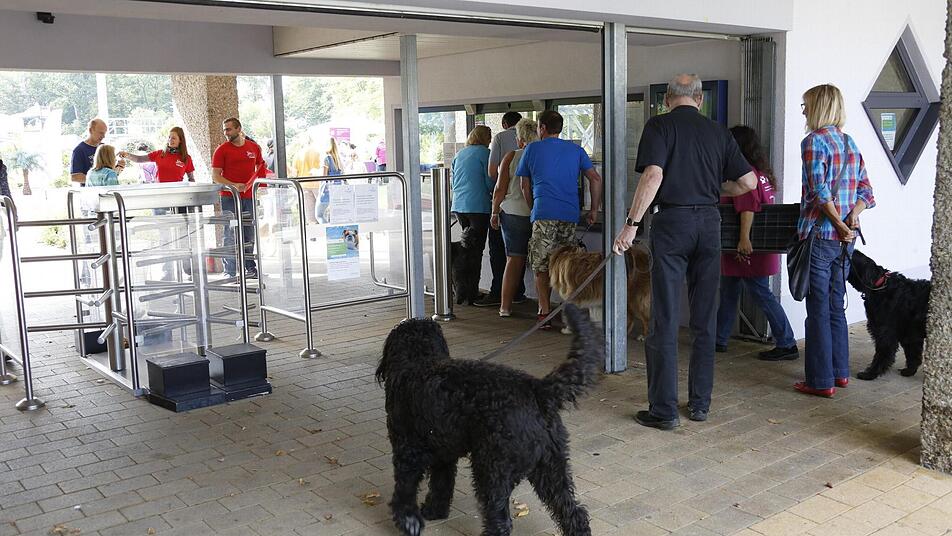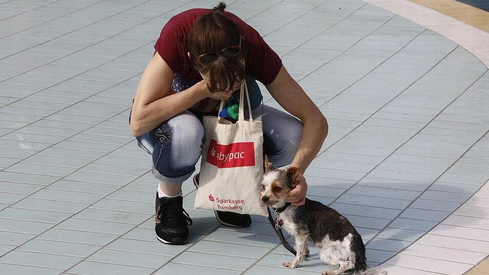 Währenddessen suchen Zweibeiner den Informationsstand des Bamberger Tierschutzvereins auf, der das Tierheim "Berganza" betreibt. "Wir führen viele persönliche Tierschutzgespräche", erklärt Liebhard Löffler, Vorsitzender des Vereins, der sich mit Tierheimleiterin Elke Pohl "tierisch über diesen Tag freut". Schließlich kommt der Erlös dieses Hundebadetages weitgehend "Berganza" zugute: "Durch diese Aktion sind die täglichen Unkosten von 1000 bis 1500 Euro für einen Tag gedeckt", erklärt Löffler. Außerdem habe sich an dem Stand die eine oder andere Vermittlung von Katzen ergeben: Fast 90 warten im Tierheim auf ein neues Zuhause. Und etwa 25 Hunde.