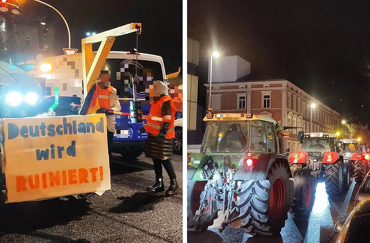 Bei der "Stay Awake"-Demonstration in Bamberg am Montag, dem 15. Januar 2024, sind Traktoren mitgefahren. Wie die Polizeiinspektion Bamberg-Stadt gegenüber inFranken.de erklärt, habe man bei der Versammlung "circa 600 Teilnehmer" und "17 Traktoren" gezählt. Auch in der Woche zuvor waren am Montagabend Schlepper im Stadtgebiet unterwegs.