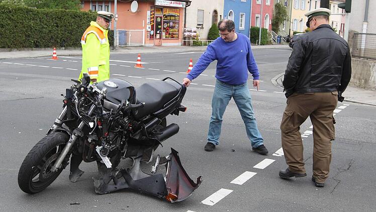 Wie die Polizei bestätigte, fuhr der Transporter trotz roter Ampel stadtauswärts auf die Kreuzung. Ein aus der Weißenburgstraße kommender Motorradfahrer bremste, konnte einen Aufprall jedoch nicht mehr verhindern. Er prallte gegen die Fahrertür des Transporters und wurde dabei schwer verletzt.