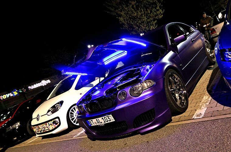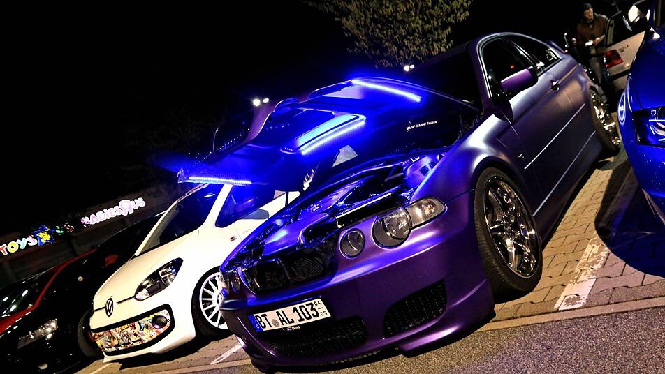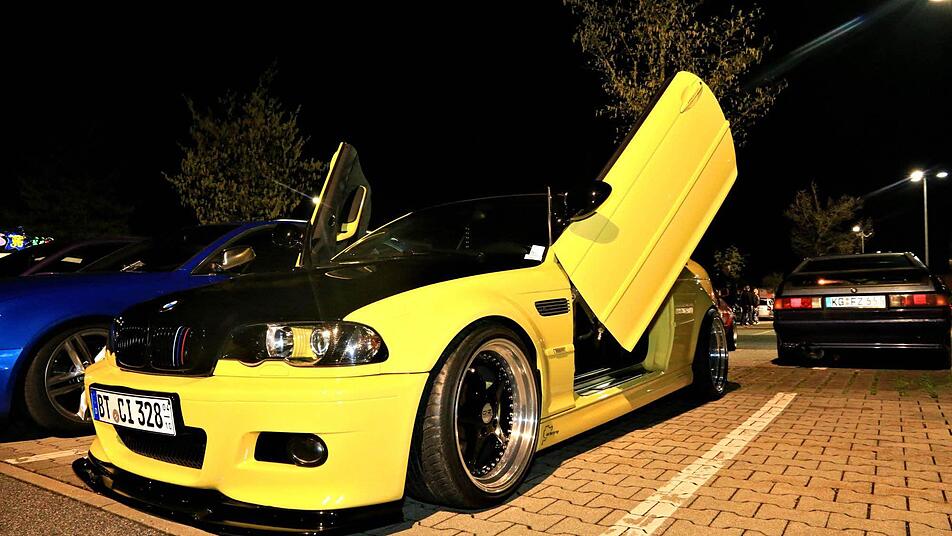 Die Tuninggemeinschaft "Bullrun Bamberg" feierte den diesjährigen Saisonauftakt auf dem Obi Gelände im Laubanger.