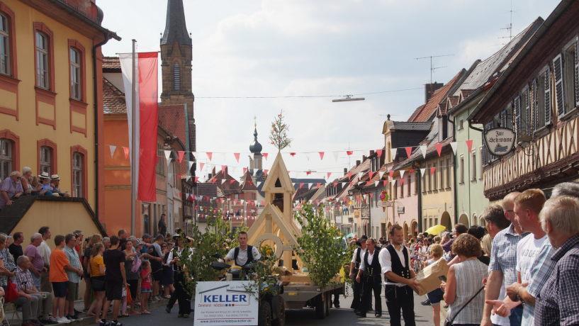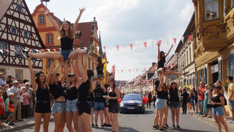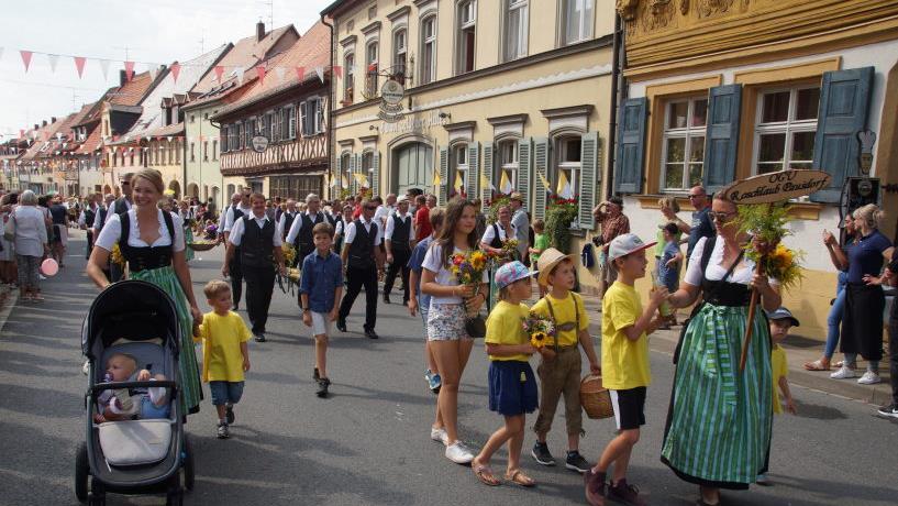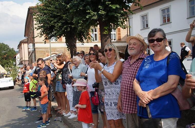 Die Stadt mit ihren 29 Ortsteilen präsentierte sich beim Kirchweihumzug am Samstag von ihrer besten Seite. Dank des hochsommerlichen Wetters kamen so viele Besucher wie noch nie. Sie säumten die Gehsteige vom Zugbeginn in der Bambergerstraße bis zum Oberend an der Juraklinik in Scharen und jubelten den 55 Zugteilnehmern begeistert zu. Auch das war ein neuer Rekord, über den sich die Organisatoren, Zweiter Bürgermeister Reinhold Söder und Werner Schmutzer als Vorsitzender des Trägervereins, sichtlich freuten.