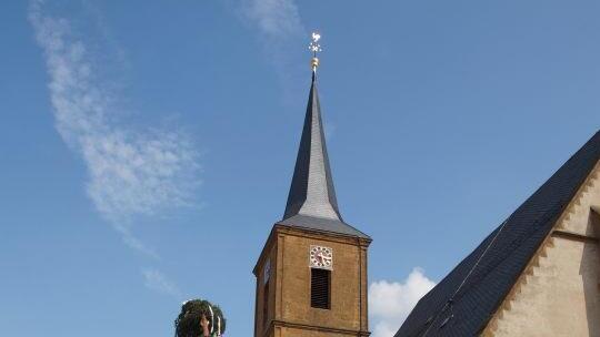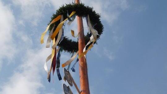 Der 31 Meter lange Kirchweihbaum war diese Jahr neu aus dem Stadtwald bei Dörnwasserlos geholt worden. Unter dem Oberkommando von Stefan Molitor und Claus Freudensprung hievten ihn die Scheßlitzer Feuerwehrler in die Senkrechte. Anschließend schraubten die Baumkletterer Gerald Uch und Felix Weber die Zunft- und Vereinszeichen an den Stamm.