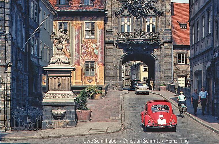 - Als "echter" oder schon Jahrzehnte in dieser Stadt lebender Bamberger, meint man, ihr Gesicht zu kennen. Mit allen feinen Zügen, aber auch mit ihren Falten sprich städtebaulichen Sünden. Ungezählte Bücher und Büchlein gibt es über Bamberg. Kaum zu glauben, dass Autoren noch etwas Neues einfällt über das fränkische Rom. Dabei ist es eigentlich etwas Altes, was Uwe Schillhabel, Christian Schmitt und Heinz Tillig in einem außergewöhnlichen Bildband präsentieren. Bisher unveröffentlichte, großformatige Farb- und Schwarz-Weiß-Fotografien aus den Jahren 1955 bis 1968, die unbekannte oder vergessene Gesichter Bambergs zeigen.