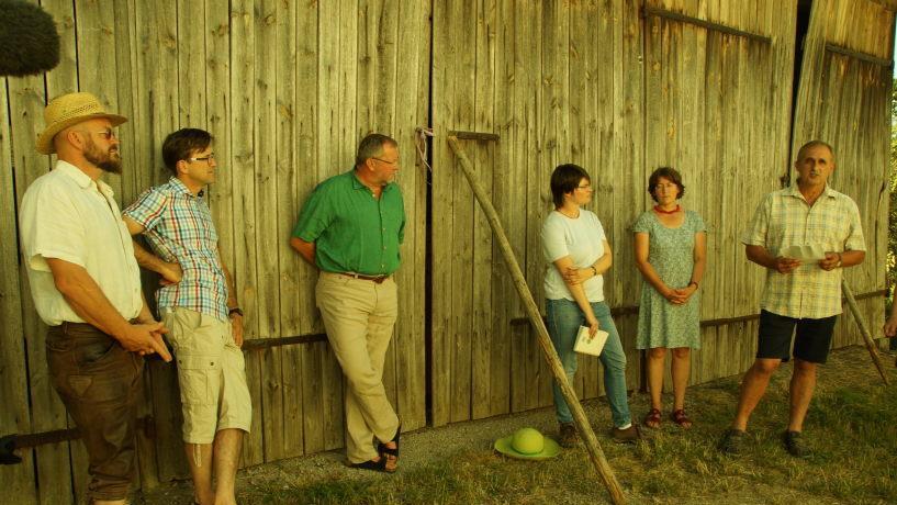 Beim Gang auf die Felder und zu den Weideplätzen der Rinder ergaben sich viele zusätzliche Gesprächsmöglichkeiten zwischen Bürgermeisterin Gisela Hofmann (BBL), Peter Manusch, Jonas Wicklein und Udo Rumpel von Naturland, Sigi Weid von der Regierung von Oberfranken, Matthias Görl von der oberfränkischen staatlichen Ökoberatung und weiteren Teilnehmern.