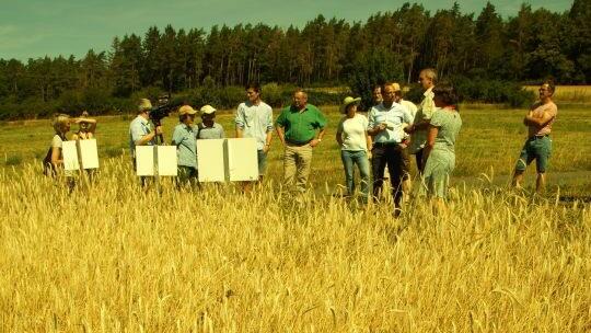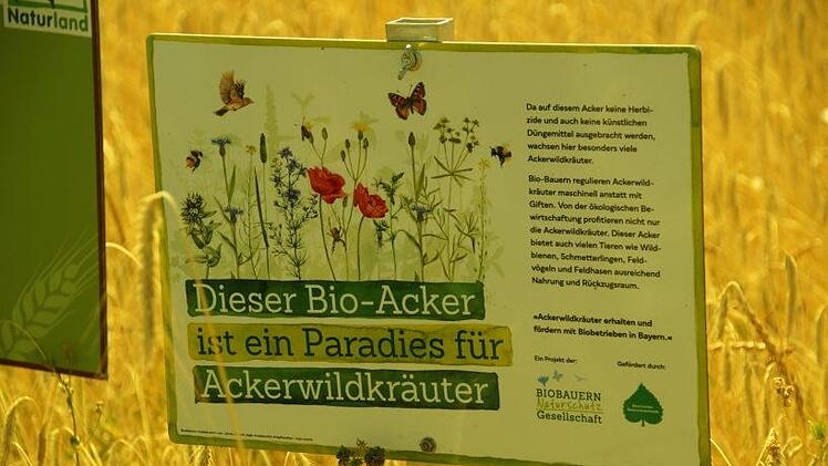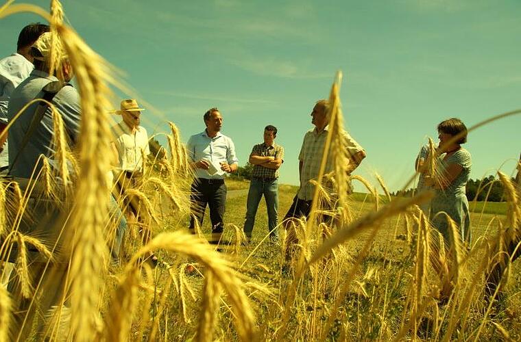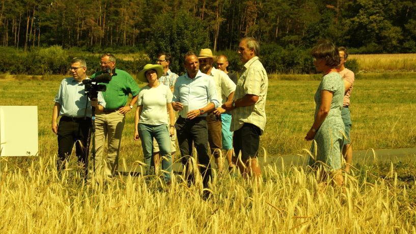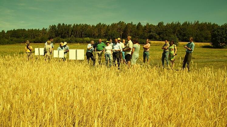 Am Getreideacker erklärte Weiß, dass er mit Striegeln und Hacken viele Unkräuter als Konkurrenten des Getreides im Griff habe. Das geschehe auch durch den Fruchtwechsel, den er seit 30 Jahren betreibe. Der Boden werde nie mehr als zehn Zentimeter tief bearbeitet und könne so den Humus gut aufbauen.