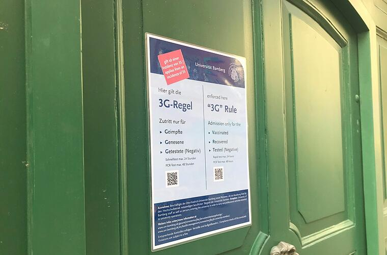 Ab einer 7-Tage-Inzidenz in Bamberg von mehr als 35 gilt an der Uni die 3G-Regelung, erläutert die Universität auf Nachfrage von inFranken.de. Studierende, die nicht geimpft oder genesen sind, müssten dementsprechend ein negatives Corona-Testergebnis vorlegen, um an Präsenzveranstaltungen teilnehmen zu können.