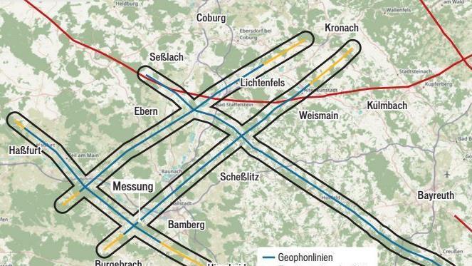 Drei ungewöhnliche Lkw mit großen Reifen rollen langsam über einen Feldweg zwischen Trosdorf und Tütschengereuth und bleiben an einer roten Fahne stehen. Aus ihrem Bauch senken sich flache Platten auf den Schotter. Gelbe Warnleuchten blinken. Dann ertönt ein wummerndes Geräusch und der Boden scheint zu vibrieren. Die Platten werden wieder nach oben gezogen. Die Lkw rollen weiter. Zur nächsten Fahne. An der Markierung vorbei verlaufen Kabel entlang des gesamten Ackers und bündeln sich an einem Lastwagen mit großer Antenne. Darin blickt Daniel Günther auf sechs Bildschirme.