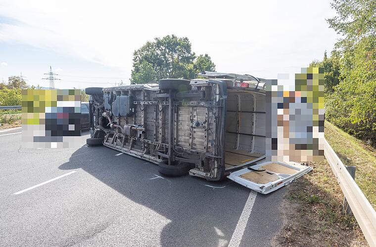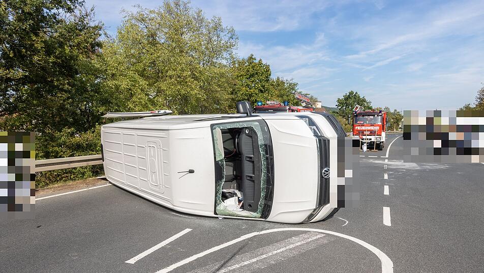 A70 bei Hallstadt: Fahrer übersieht Auto - Kleintransporter kippt um