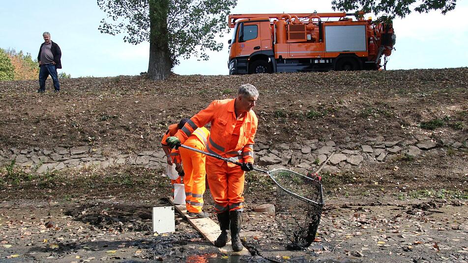 Fast sieht es aus, als würde der Fisch nach Luft schnappen, als Jürgen Breitenstein das Tier vorsichtig aus dem stinkenden Schlamm hebt und in einen Eimer sauberes Wasser glitschen lässt. Der Stadtarbeiter steht knöcheltief im Matsch. Seine Kollegen Tobias Shank und Peter Baum balancieren auf einer großen Holzplanke, um mit Keschern zu der einzig verbliebenen, müffelnden, schwarzen Pfütze vorzudringen, in der noch unzählige kleine Fische ums Überleben kämpfen. Der Sendelbach ist für sie zur tödlichen Falle geworden. Normalerweise fließt er aus dem Herzen des Bamberger Hauptsmoorwaldes in Richtung Westen und plätschert in der Nähe der Schleuse in den Kanal. Doch nun durchziehen tiefe Risse das vertrocknete Bachbett, und leblose Muscheln liegen kreuz und quer im kleinen Weiher.