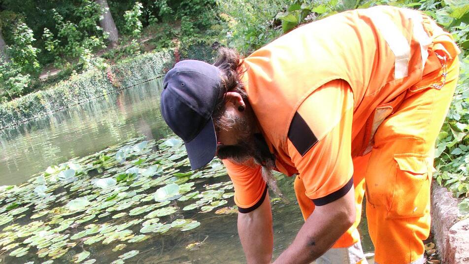 Während die Regierung ein Klimapaket schnürt und in Bamberg Tausende für den Klimaschutz demonstrieren, retten Stadtarbeiter Fische aus dem vertrockneten Sendelbachweiher. Eines von vielen Symptomen der dramatischen Dürre.