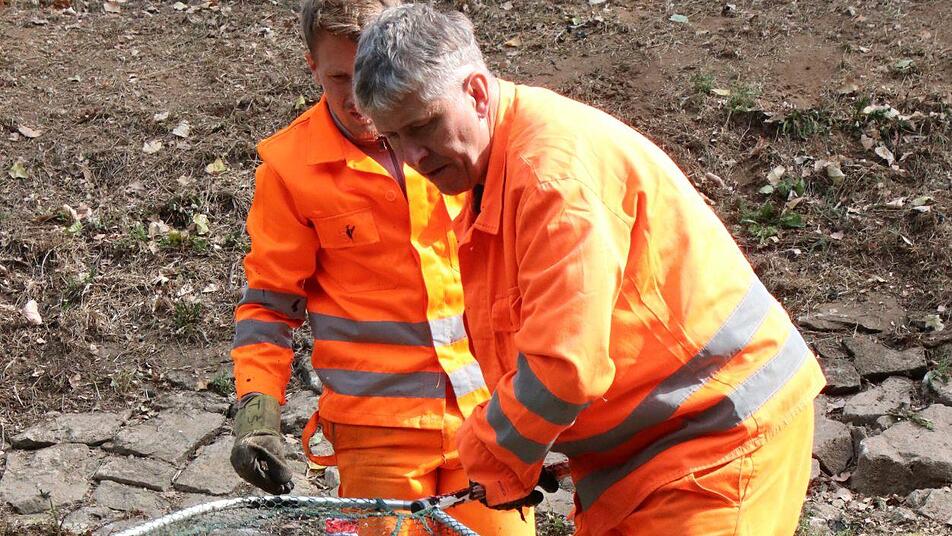 Anwohner Clemens Maydt hatte die Stadt verständigt, als er die Fische in ihrer aussichtslosen Lage entdeckt hatte. Mit Tochter und Enkeln hat er schon ein paar von ihnen gerettet. "Die Kinder lernen Fürsorge für Lebewesen", sagt der Opa. Nur in die Mitte des Schlammlochs konnten die drei Generationen nicht vordringen. Also schlug Maydt im Rathaus Alarm.