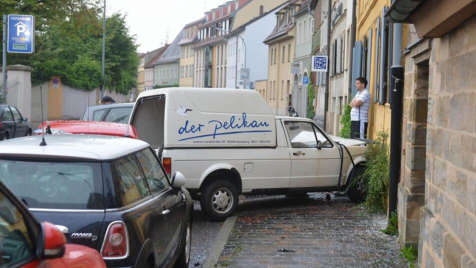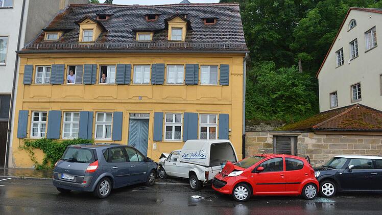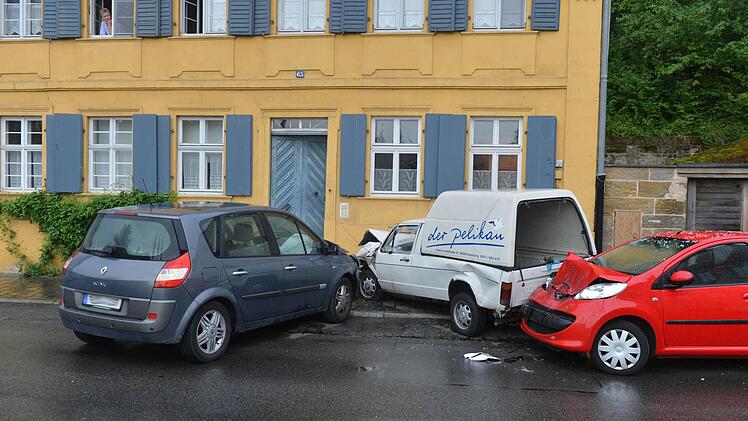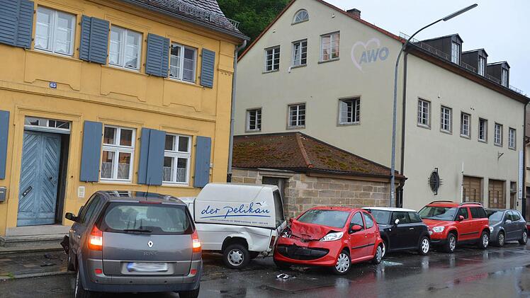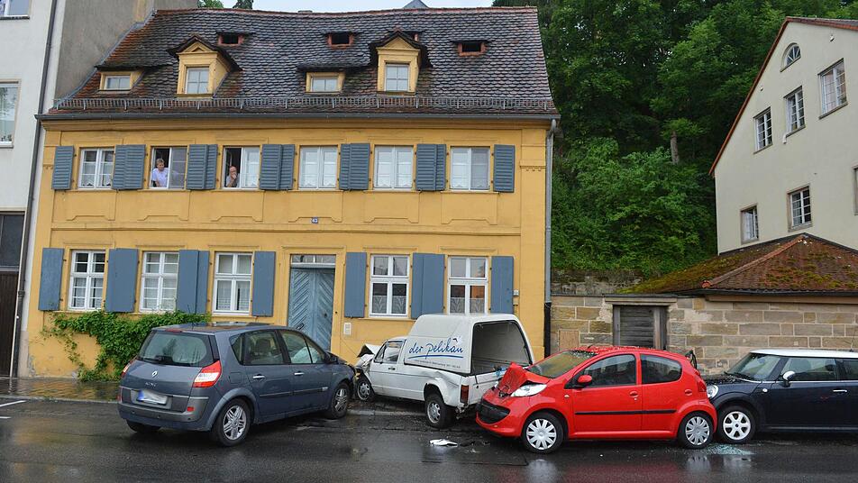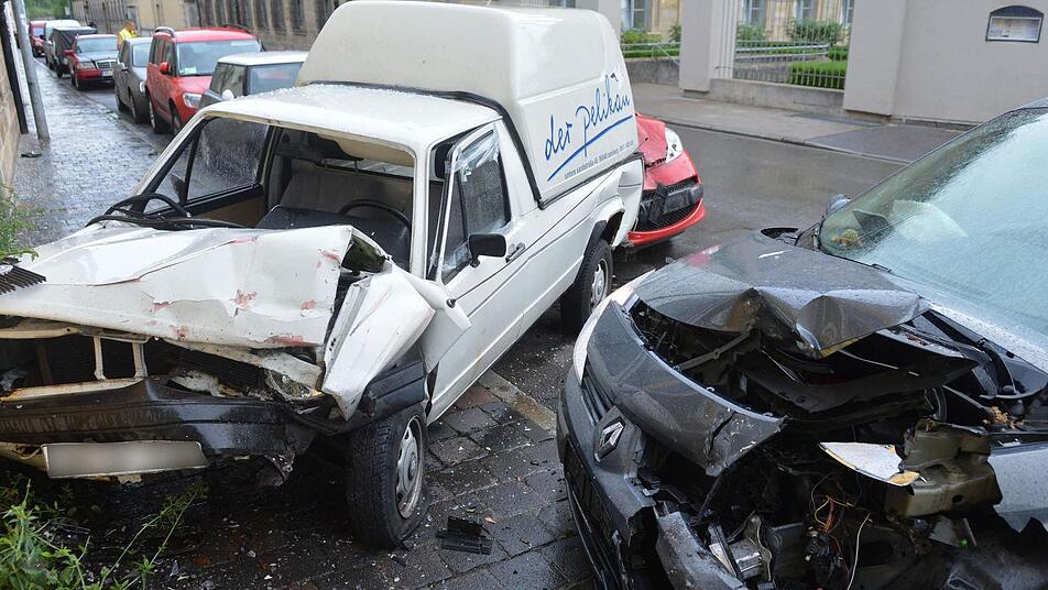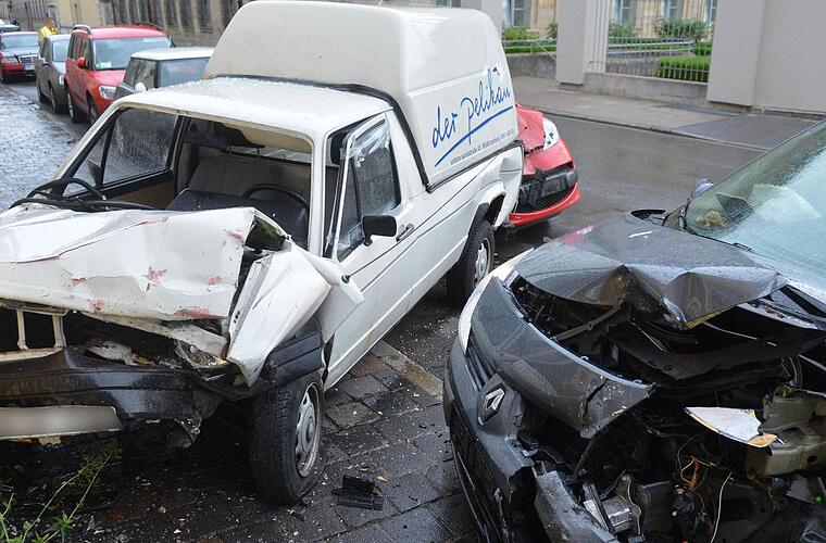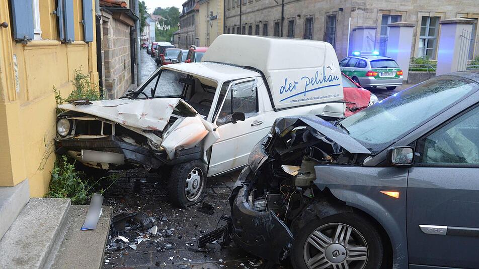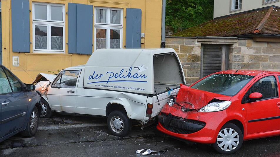 In der Unteren Sandstraße in Bamberg rammte am frühen Samstagmorgen eine Autofahrerin einen Transporter. Durch die Wucht des Aufpralls schob dieser drei weitere Pkw zusammen und gegen eine Hauswand.