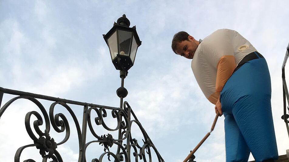 Gewöhnungsbedürftig ist dagegen die Sache mit dem 30. Geburtstag von noch nicht Verheirateten: Die müssen die Rathaustreppe fegen und andere Aufgaben, die ihnen ihre "Freunde" stellen. Wegzufegen waren im konkreten Fall Tausende von Kronkorken, und das mit einem Besen, dessen Stil aus knickbaren Teilen bestand.