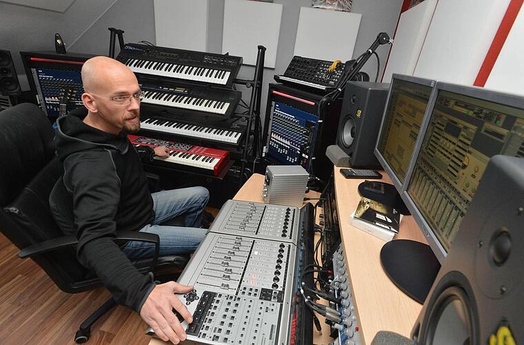 Dennoch entschied sich der Abiturient, einen bodenständigen Brotberuf zu lernen. Bis er vom Steinrestaurator, Multimedia Designer und Grafiker wieder back to the roots fand. "Der Lockruf kam aus Treppendorf. Das Musikhaus Thomann suchte einen Musiker für die Studio-Abteilung, der Klavier spielen kann." Prompt sagte der Bamberger zu, der als Keyboarder und Sänger von Spiral Nebula nie ganz den Kontakt zur Szene verloren hatte.