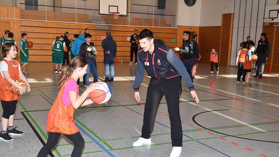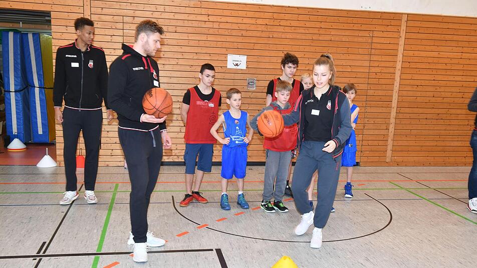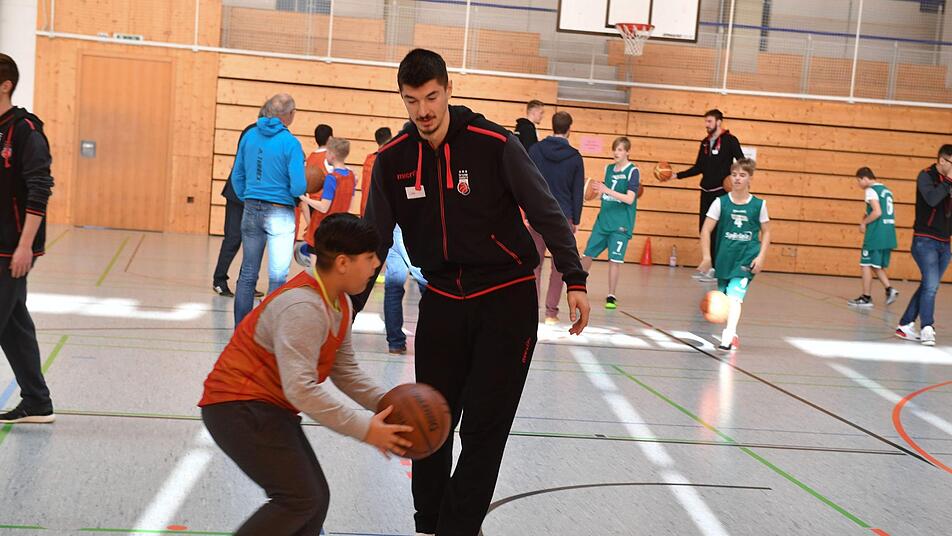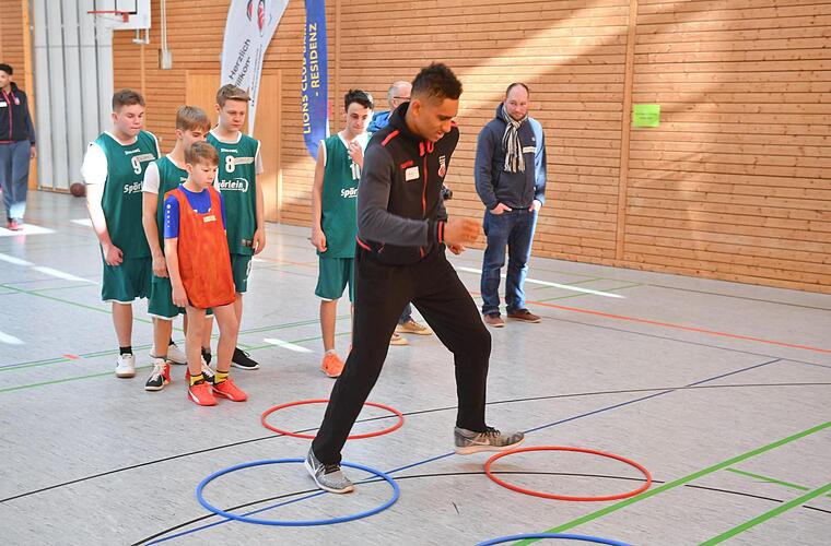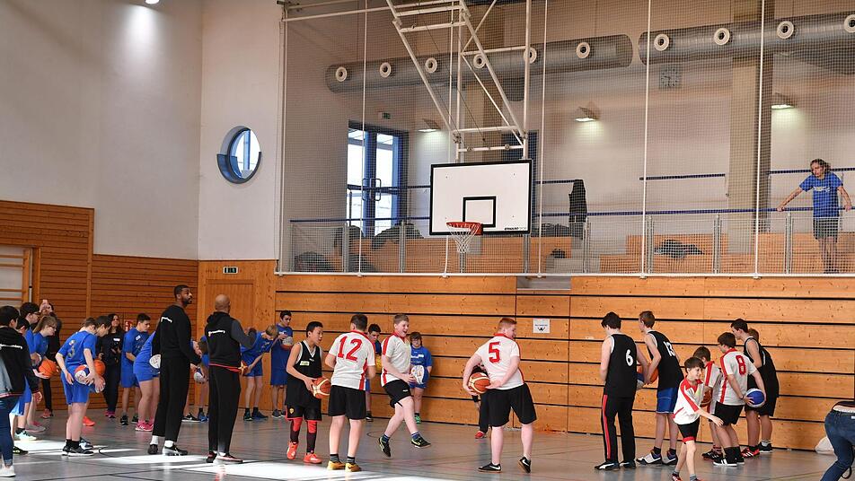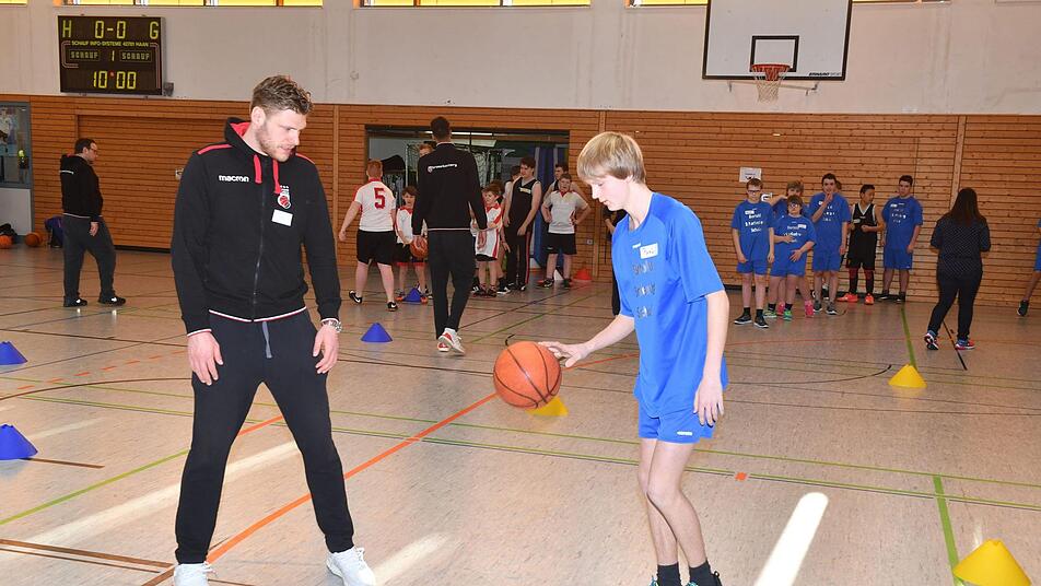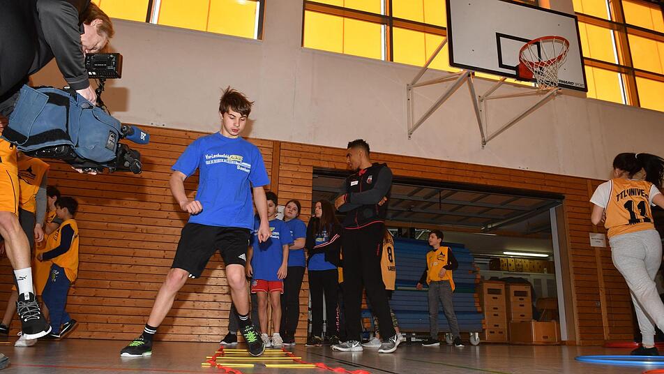 Die anfängliche Nervosität bei den Kindern sei völlig normal, meint Sebastian Böhnlein. Er muss es wissen, schließlich ist der Leiter für Schul- und Breitensport bei Brose Bamberg bereits zum sechsten Mal als Verantwortlicher des Events dabei. "Wenn das Training dann mal beginnt, tauen die Schüler so richtig auf." Die darauf folgenden 60 Minuten sollten ihm Recht geben.