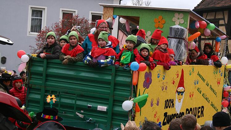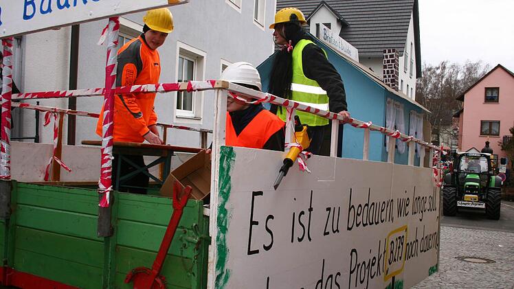 Überhaupt waren die Kreativität und der Einfallsreichtum der Zugteilnehmer kaum zu überbieten: Kommunale Ärgernisse wurden ebenso närrisch beleuchtet, wie die Energiepolitik. Von fast schon antiken Bulldogs gezogen, die, so schätzte Schweda, wohl schon älter als die meisten Zugteilnehmer waren, war es zum Beispiel die Freiwillige Feuerwehr Reckenneusig auf ihrem Umzugswagen, die die Dauerbaustelle B 279 in Baunach anprangerte, während der Anglerverein Baunach diese als Geisterbaustelle identifizierte und damit gleich die Ursache des monatelangen Staus erkannte.