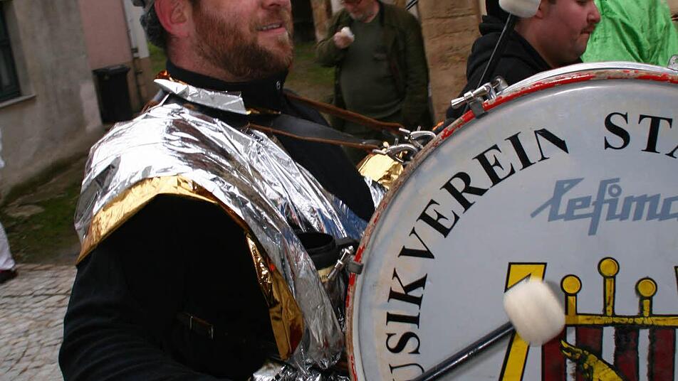 Auf der Bühne am Baunacher Marktplatz war es Reinhold Schweda vom Ortskulturring vorbehalten, launig und schlagfertig das Umzugstreiben zu kommentieren. "Die haben wohl die Einflugschneise verpasst", mutmaßte Stadtratsmitglied Schweda, als der Zug sich ein bisschen später als erwartet "den Berg hinauf" Richtung Marktplatz bewegte.
