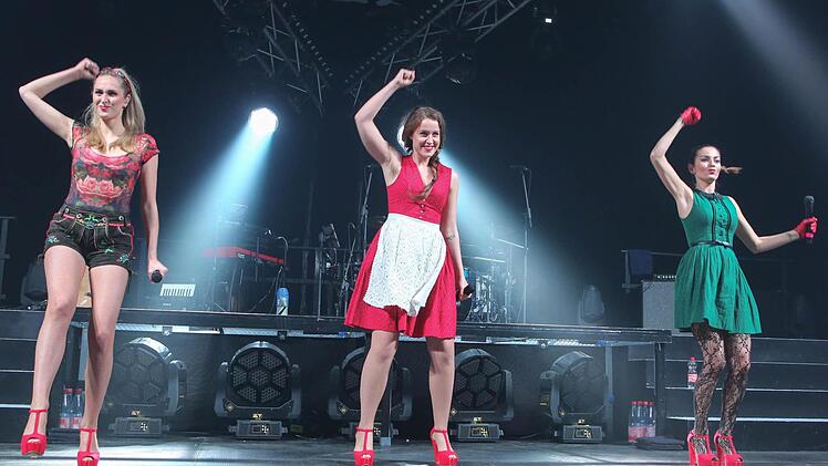 Musikalisch bereicherten die Musiker ihre Fans - unter ihnen viele weibliche im Dirndl - mit einer Mischung aus Schunkelmusik, moderner Volksmusik und Pop. Darüber hinaus suchten sie immer wieder den Kontakt zu ihrem Publikum und sprachen viele Fans auch beim Namen an. Neben Liedern aus dem neuen Album "Geiles Himmelblau" hatten Voxxclub auch einige Mädels mit nach Bamberg gebracht. So eröffneten den Konzertabend drei junge Frauen der Band "La Goassn" und die Jungs wurden ausschließlich von Musikerinnen begleitet. Allerdings griffen die Männer immer wieder selbst zu ihren Akkordeons und zweckentfremdeten so manche Bierbank oder Bierkrug als "Instrument".