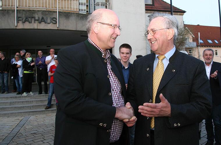 Der CSU-Kandidat behielt in Hirschaid mit 52,46 Prozent die Oberhand. Der Bewerber der Freien Wähler, Georg Kestler, war einer der ersten Gratulanten.