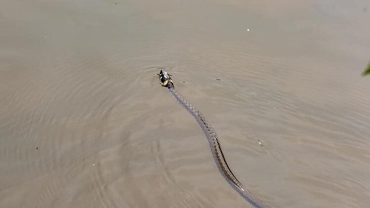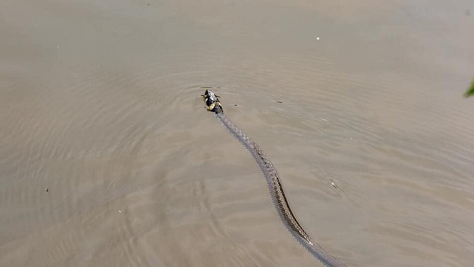 "Seit wann haben wir eine Wasserschlange im Hainweiher?" Ein lang gestrecktes Tier ist auf einem Foto in einer Bamberger Facebook-Gruppe zu sehen. Auch Hobby-Fotograf Matthias Brotkorb ist ein ähnlicher Schnappschuss gelungen.