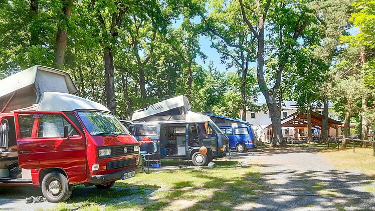 Drei Jungen schieben ihre Tretroller mühsam aber lachend durch die Wiese am Flussufer, auf der Regnitz lässt sich ein Mann auf einer Matratze treiben, Wohnmobil-Besitzer tragen Wasserkanister zu ihrem Platz, im Schatten des Sonnensegels spielt ein Pärchen Karten und gönnt sich dazu ein kühles Nachmittagsbier. Bis auf die Masken und Desinfektionsmittel-Spender sieht es fast aus wie immer. Nur Zelte sieht man keine. Weil nur Besucher, die eigenen Sanitärzugang haben, auf den Platz dürfen, erklärt Hoffmann. Falls es in den eigentlich geräumigen Duschen und WCs doch einmal eng werden sollte.