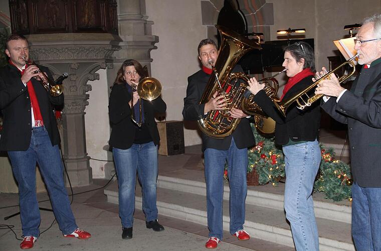 "Rekkenze Brass" bestehend aus Peter Knudsvig, Benjamin Sebald (beide Trompete), Debra Luttrell (Horn), Rainer Streit (Tuba) und Christy Belicki (die Solo-Posaunistin der Hofer Symphoniker vertrat den erkrankten René Jampen) durften sich über voll besetzte Kirchenbänke freuen. Mehr als 200 Besucher lauschten einem gut einstündigen Konzert, das einen wohltuenden Gegenpol zu den mittlerweile schon üblichen amerikanischen Weihnachtsliedern bildete.