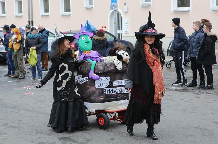 Zudem bewies er einmal mehr, dass Klasse nicht gleich Masse sein muss. Denn an Originalität und bunten Kostümen mangelte es in der Gartenstadt definitiv nicht. So waren nicht nur viele der Hunderte von Zuschauern maskiert, ganz gleich ob Klein oder Groß, auch die Zugteilnehmer griffen mehrere Mottos auf. Die Stadtbücherei St. Kunigund thematisierte die Bildungsreform und die Mitarbeiterinnen lasen als Hexen verkleidet den Schaulustigen die Leviten. "Kunterbunt" hingegen lautete das Motto des Kindergartens St. Kunigund und die Kinder und Eltern des Kindergartens an der Auferstehungskirche begeisterten als "Superhelden".