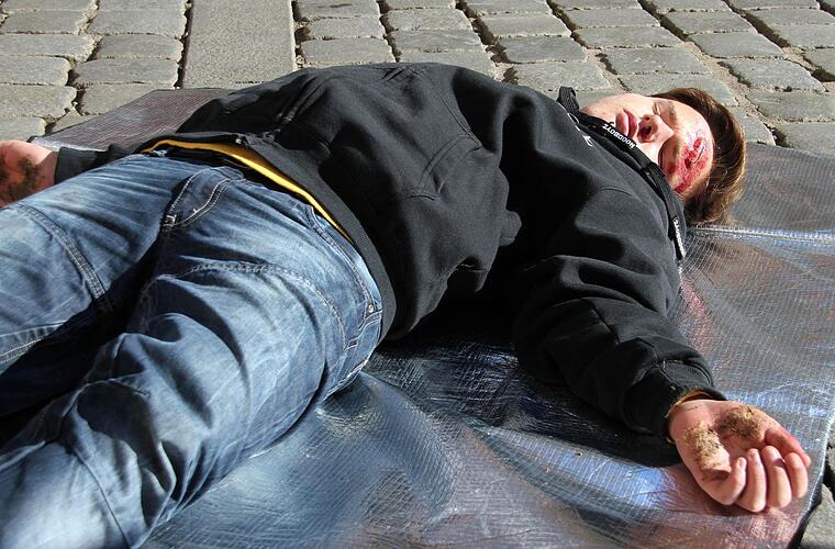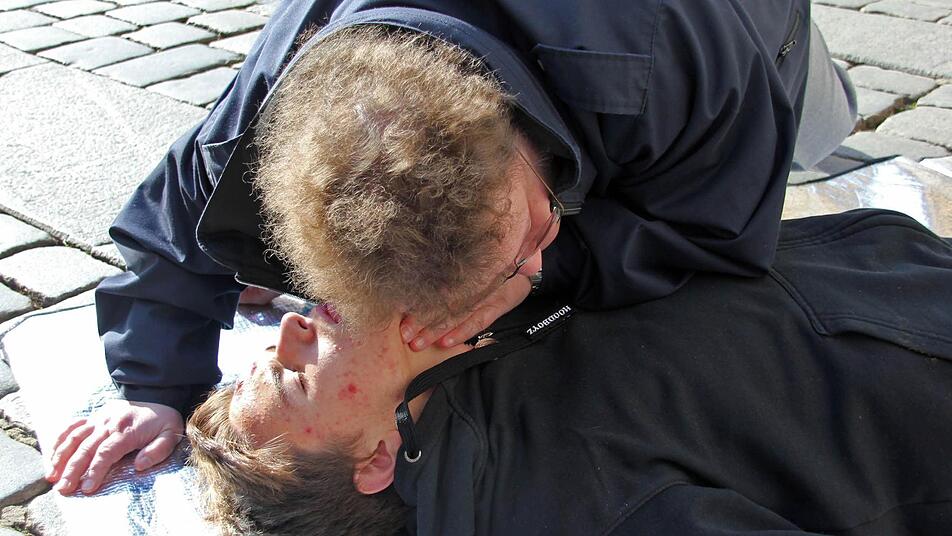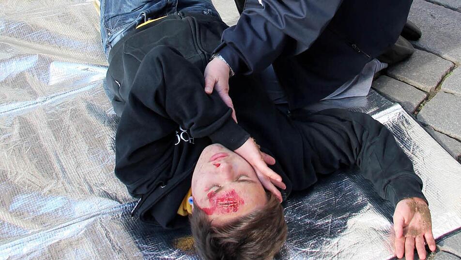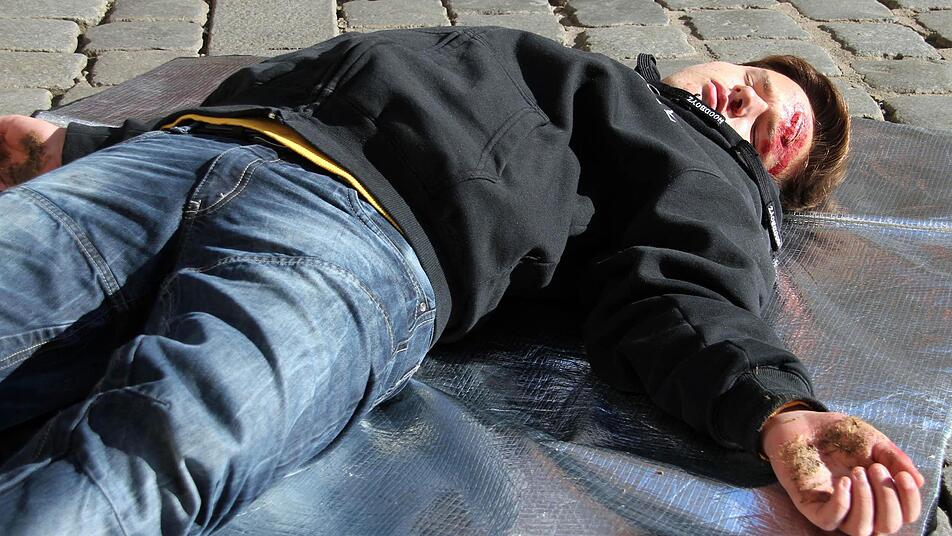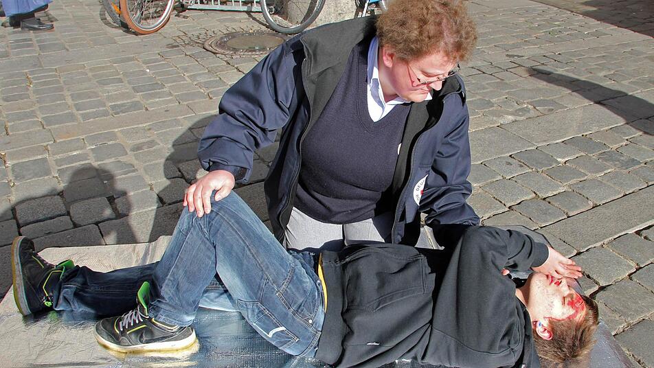 Doch wie sieht die Realität aus? Wird einem geholfen, wenn man sich verletzt? inFranken.de hat den Test gemacht. Robin Steppe (14), der sich selbst beim Jugendrotkreuz engagiert, bekommt eine (geschminkte) Kopfplatzwunde verpasst und mimt in der Bamberger Fußgängerzone einen Verletzten. Die Passanten in der Fußgängerzone haben so die Möglichkeit, ihr eigenes Wissen über Erste Hilfe zu testen. Sie können unter Aufsicht einer erfahrenen Ausbilderin Erste Hilfe leisten und bekommen direkt Rückmeldung, worauf sie achten müssen. Wie haben sich unsere Helfer geschlagen? Sie erfahren es in unserem Video!