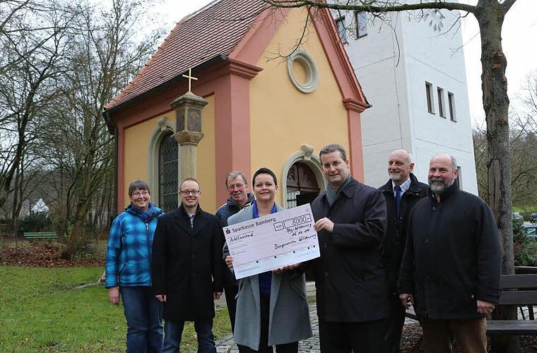 Trotz dieser überschaubaren Summe ist der Finanzreferent froh über einen wesentlichen Beitrag von 8000 Euro: Bürgervereins-Vorsitzende Hoh überreichte ihm unlängst in der neu erstrahlten Kapelle den symbolischen Scheck. "Ganz Wildensorg hat nach einem Aufruf gespendet", so Monika Hoh dankbar. Bei dieser Aktion seien 3660 Euro zusammen gekommen, der Bürgerverein mit seinen 310 Mitgliedern - Ehrenmitglied ist Erzbischof emeritus Karl Braun - habe aus dem Überschuss von Veranstaltungen wie dem Johannisfeuer auf 8000 Euro aufgestockt.