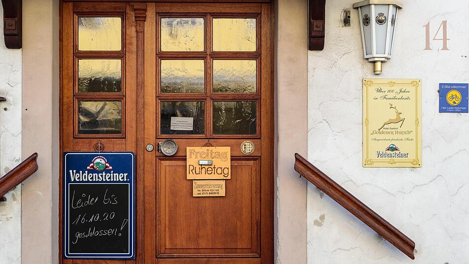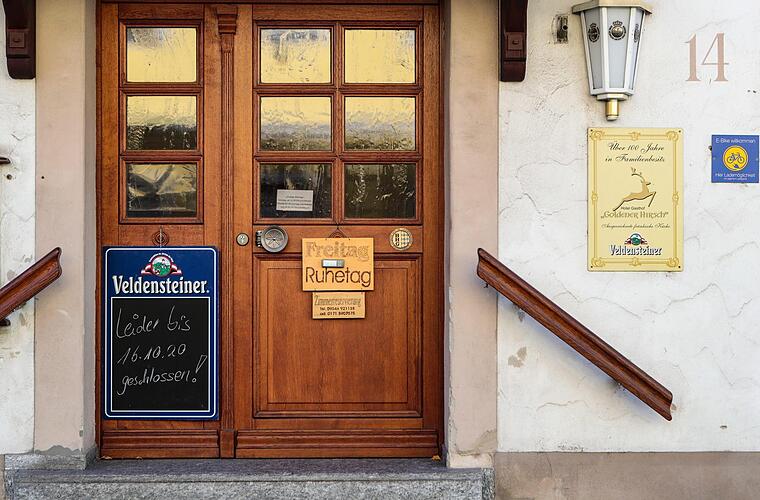 Zwar wurde in Burgebrach offiziell keine Kerwa gefeiert, aber ein bisschen hatten die Menschen doch ein besonderes Wochenende begehen wollen - mit Essen in den Gaststätten. Doch machte das "Virus des Jahres" auch hier noch einmal einen Strich durch die Rechnung: Coronabedingt hatte und hat der Goldene Hirsch in der Marktstraße geschlossen.