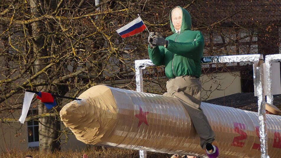 Blaue Brücken fügen sich nicht in die Landschaft ein Für vegane Ernährung sprach sich der Tennisclub aus: "Weg mit der Todesstrafe für Schlachtvieh", war auf dem großen Wagen zu lesen, auf dem sich eine "Möhrenräucherei" und eine "Kohlschlachterei" befanden. Gleich dahinter fuhr der Pfeifenclub aus Ebing Wladimir Putin auf einer Rakete spazieren. Und auch Dresden hatte es indirekt nach Zapfendorf geschafft: Die Spielvereinigung Germania Ebing machte auf BIERGIDA - "Hier demonstriert, das ist doch klar, die Abicher BIERGIDA." In Zapfendorf nicht fehlen darf natürlich das Thema ICE-Ausbau.