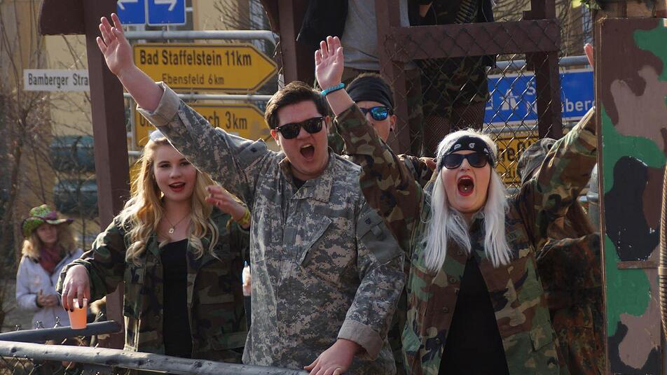Wie 2014 beteiligten sich beim Zapfendorfer Faschingsumzug wieder 24 Gruppen. Abwechslungsreich waren die Themen. "Die junga Laafer" beispielsweise verabschiedeten sich auf ihre Art und Weise von den Amerikanern: "Die Amis sagen ,Tschau', wir sagen ,Helau'!" Eine wichtige lokale Angelegenheit spielte beim Stammtisch "Sprich Leise" eine Rolle: Das geplante Ärztehaus auf dem Gelände der ehemaligen Brauerei und Gastwirtschaft Drei Kronen.
